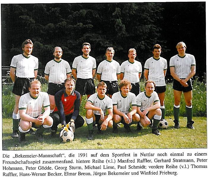 Die Fußballsaison 1990/91 verlief im Seniorenbereich mit unterschiedlichem Erfolg. Nach guten Ergebnissen vor Beginn der Winterpause konnte nach Wiederaufnahme des Spielbetriebs dieses Niveau nicht mehr gehalten werden. Die I. Mannschaft belegte nach Saisonende den 5. Tabellenplatz, nachdem man zwischenzeitlich sogar auf Platz 2 stand. Unsere II. Mannschaft stieg aus der B-Kreisklasse ab. Sie verlor das Entscheidungsspiel gegen Bödefeld II und spielt nun in der laufenden Saison in der C-Kreisklasse. Allerdings konnten unsere Seniorenfußballer in der Halle überzeugen. Beim WFG-Erdgas-Cup belegte das Team unter mehr als 50 teilnehmenden Mannschaften aus den Atlkreisen Arnsberg und Meschede einen hervorragenden 10. Platz. Sieger wurde der spätere Landesligameister TuS Sundern. Unser Spielertrainer wurde von den teilnehmenden Mannschaften zum besten Verteidiger des Turniers gewählt.