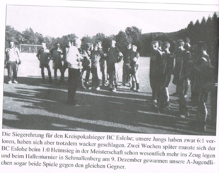 Die Saison 2000/2001 beendeten wir auf einem guten vierten Platz. Da wir zum Ende der Hinrunde noch auf einem hervorragenden zweiten Tabellenplatz standen, wurden wir in der Winterpause zum WFG-Hallencup eingeladen. An diesem Turnier nahmen ausschließlich Bezirksligisten und die besten Mannschaften der Leistungsligen teil. Nach sehr guten Ergebnissen, zum Beispiel einem Unentschieden gegen den damaligen Tabellenführer der Bezirksliga, TuS Sundern, schieden wir dann etwas unglücklich in der Zwischenrunde aus.